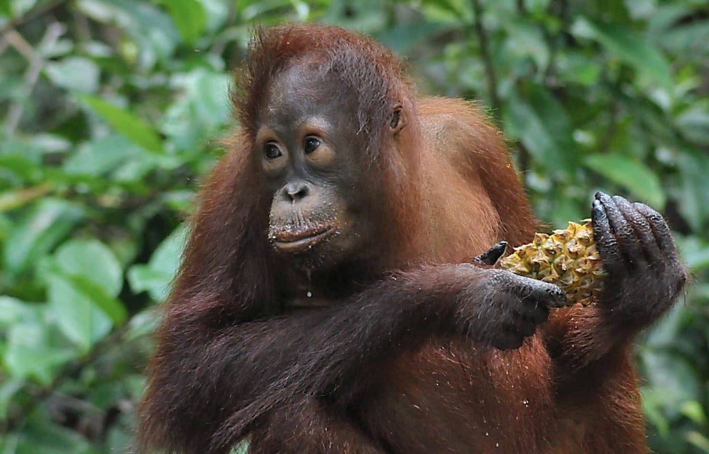 For example, orangutans in Borneo use leaves as napkins to wipe their chins, while those in Sumatra use leaves as gloves to handle spiny fruits and branches, or as seat cushions in spiny trees.